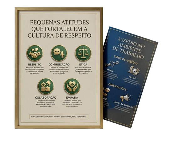 Materiais prontos para impressão que reforçam a cultura preventiva de forma clara, profissional e impactante.